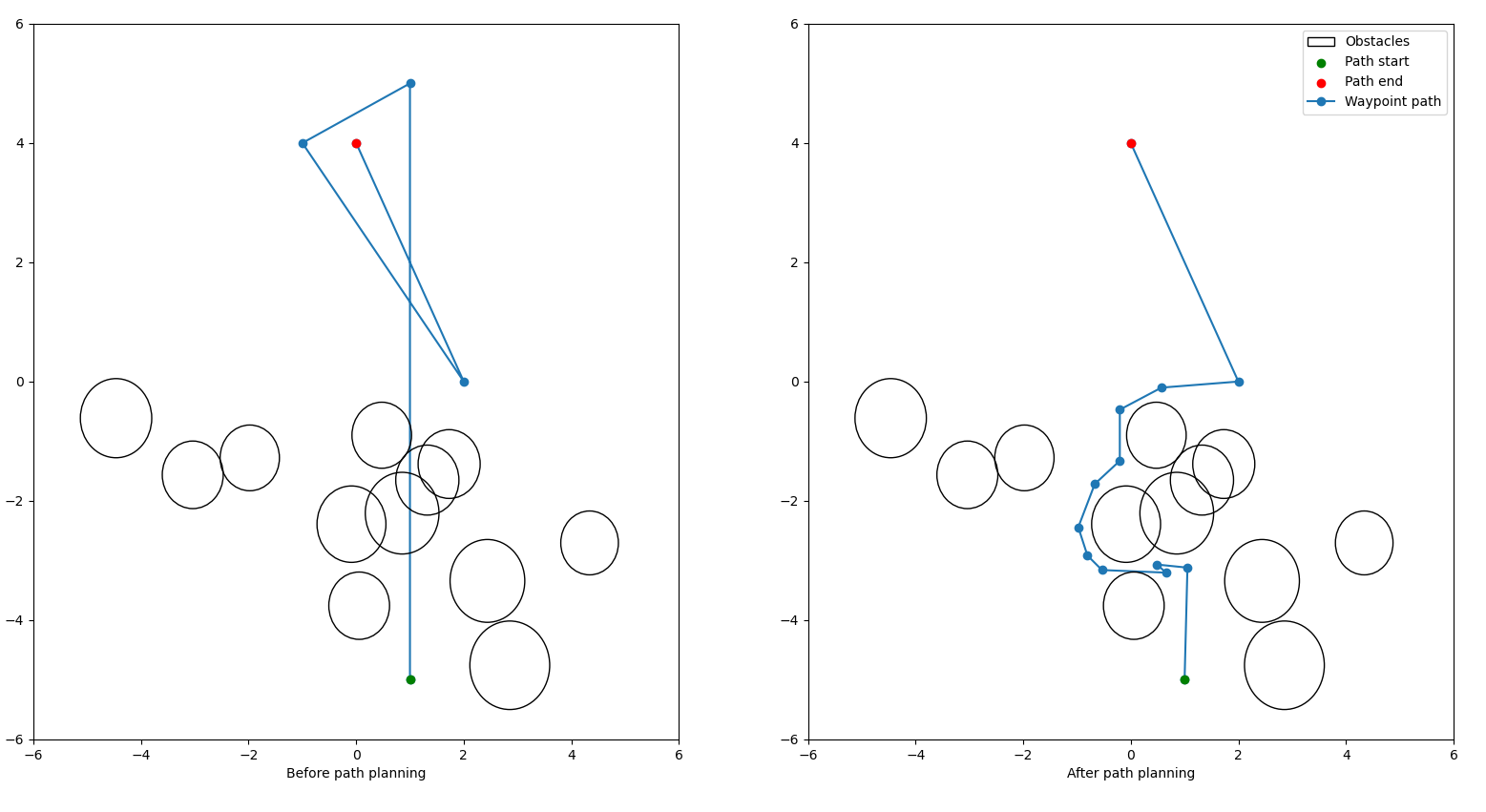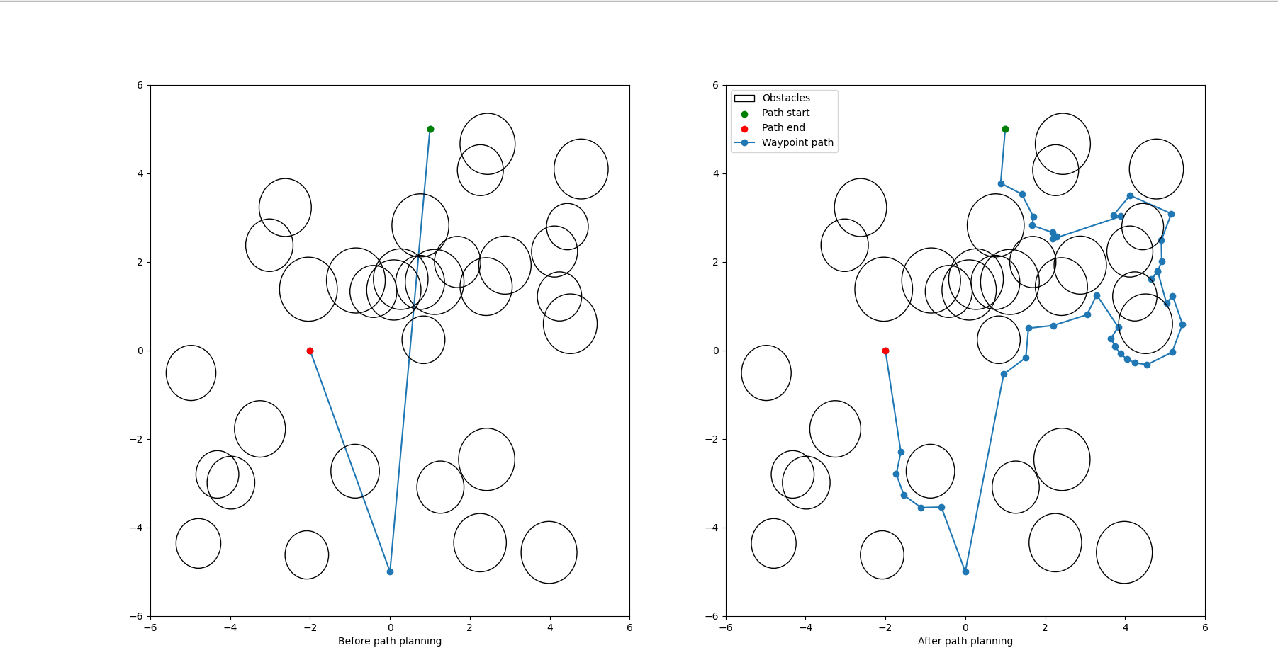 The advantage of a gridless path planner is that it does not require iterating over a grid. This saves a significant amount of computation time. It also means that the algorithm scales to any size without any downside. An issue with previous years path planners was that the grid of particles in computer vision needed to be expanded to the size of the robot. With Tangent Based path planning this is completely unnecessary. The limitations on scale are defined by number of objects, not object size. This benefits applications where obstacles may be large but not exceedingly numerous, as is the case in IGVC.
